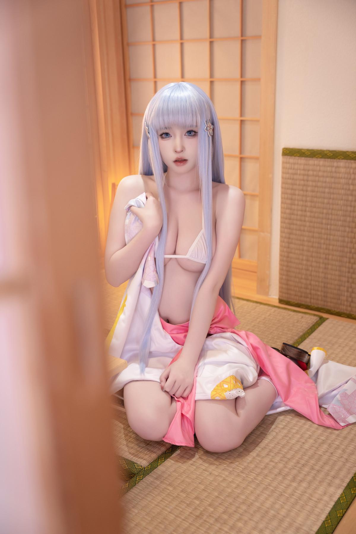 性感尤物清水由乃雪女原服主题私房性感日系服饰半脱露白色内衣秀翘臀美腿诱惑写真