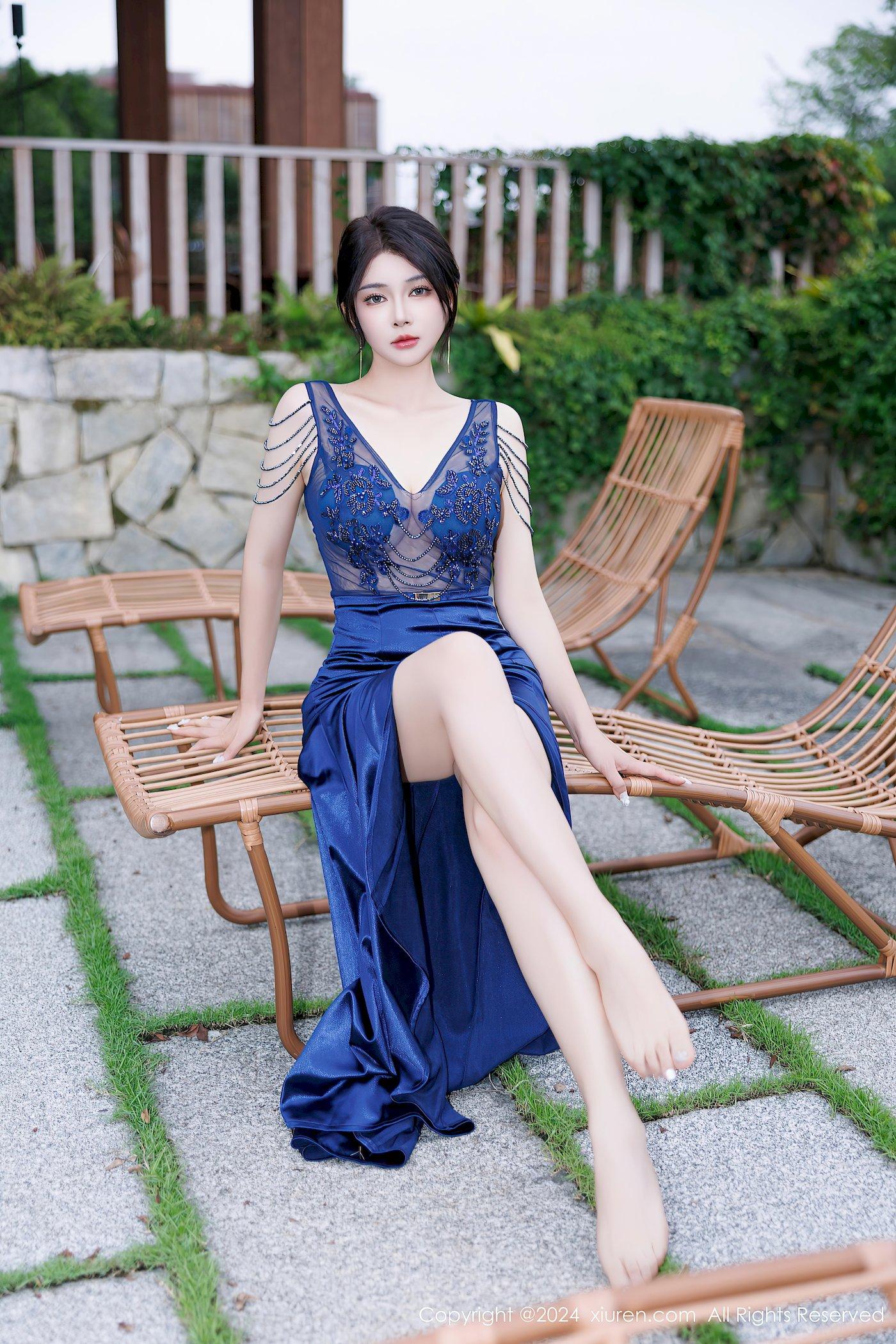 秀人网模特凯竹Quinn蓝色连衣裙搭配丰腴身姿性感写真