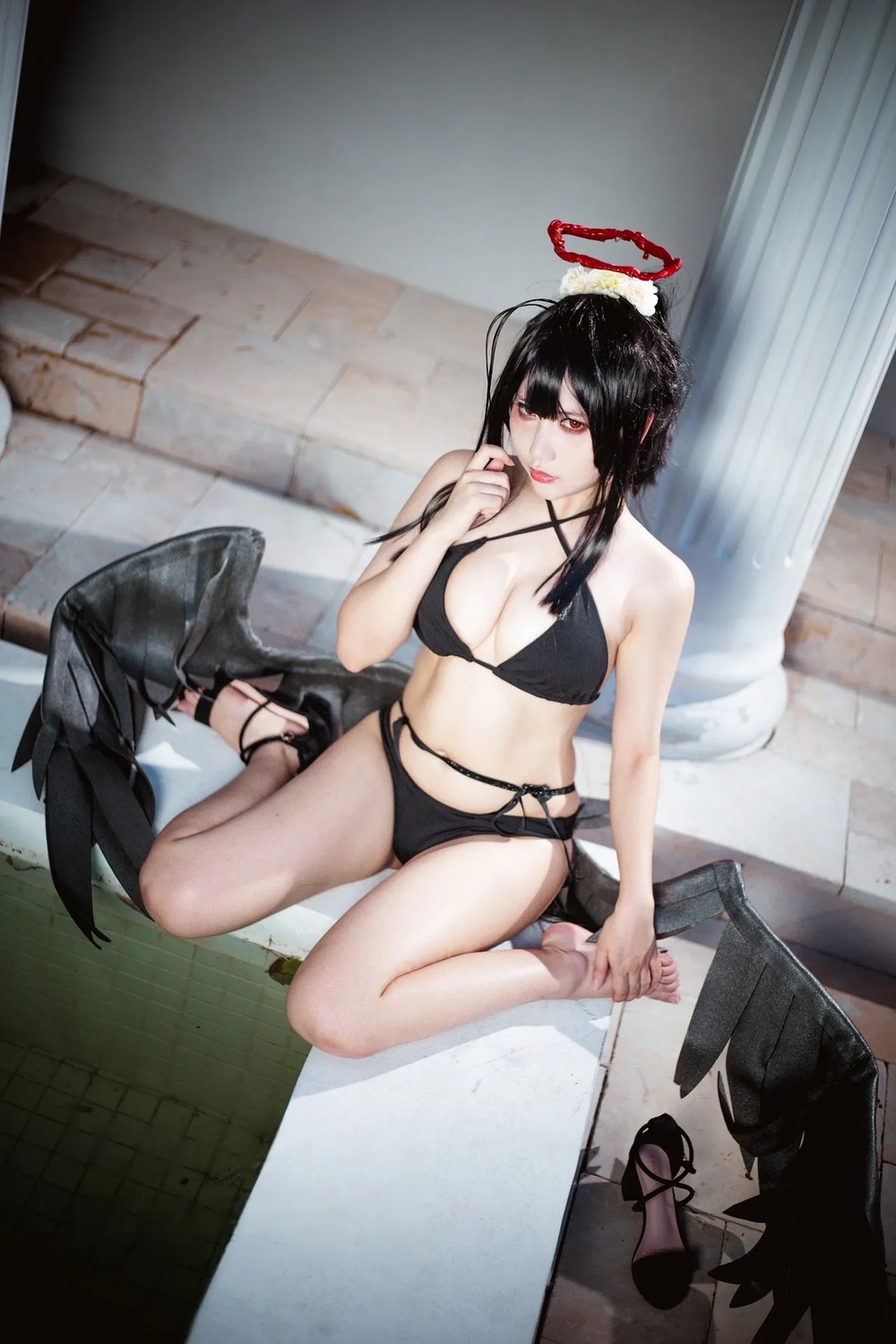 性感尤物清水由乃黑江雫主题性感黑色女仆装露黑色内衣配黑丝吊袜秀美腿诱惑写真