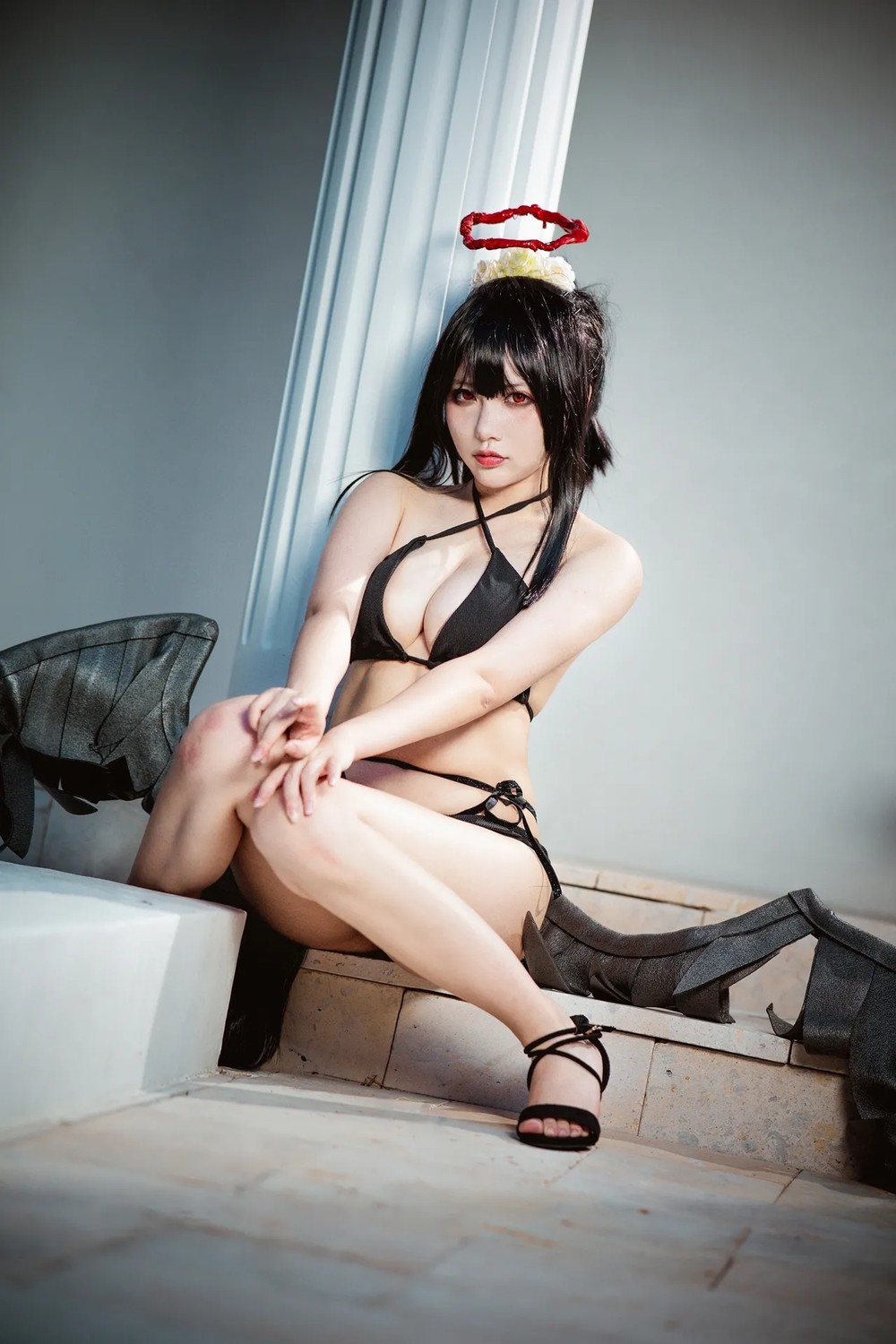 性感尤物清水由乃黑江雫主题性感黑色女仆装露黑色内衣配黑丝吊袜秀美腿诱惑写真