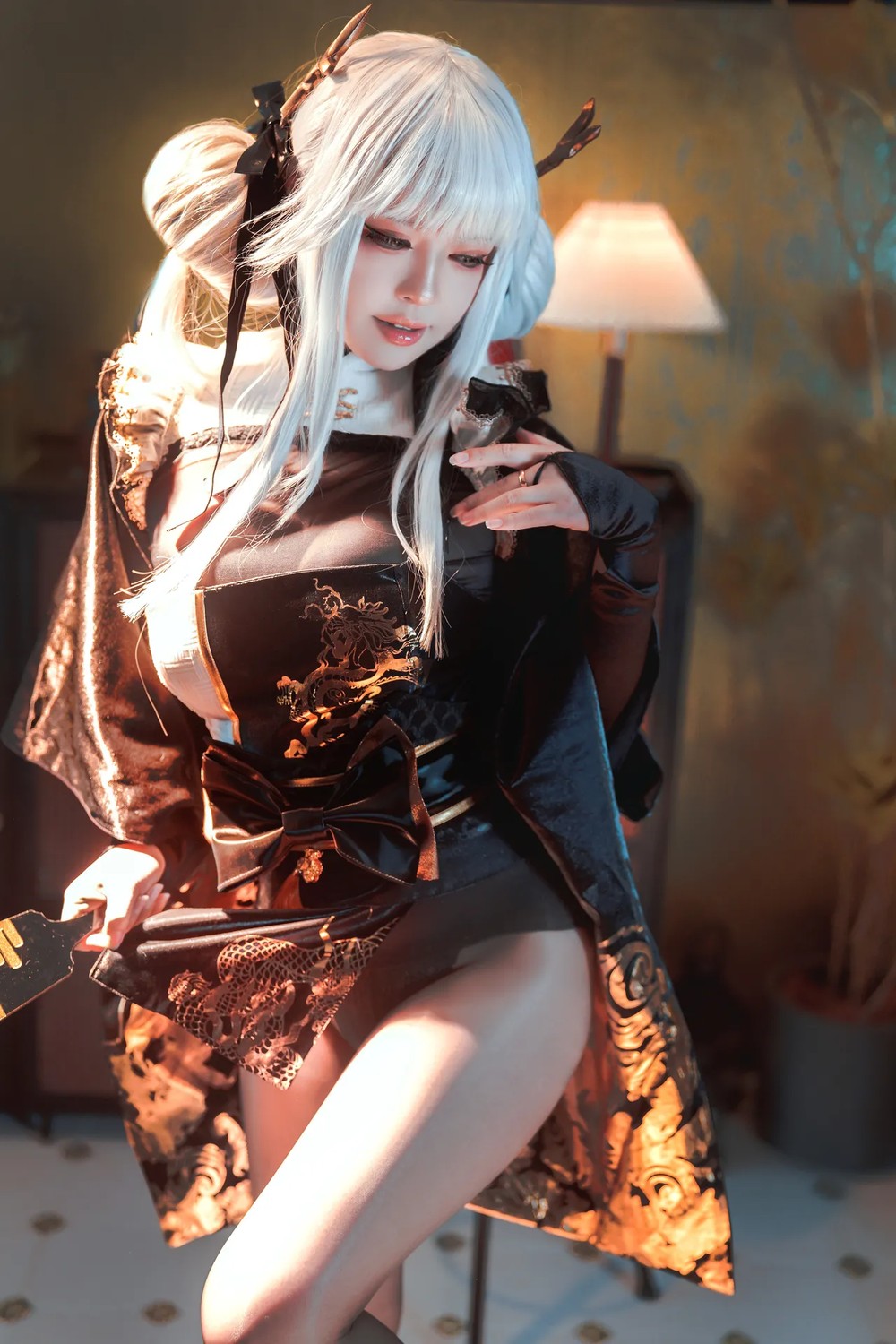动漫博主洛璃LoLiSAMA恶魔修女主题性感黑色皮质服饰配黑皮吊袜秀翘臀美腿诱惑写真