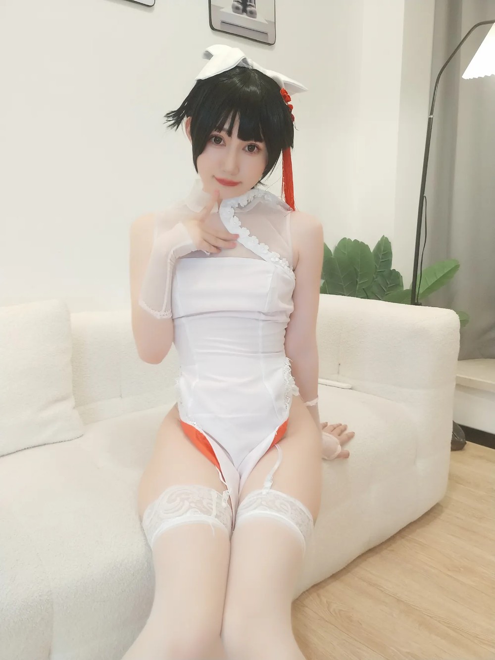 网络美女Natsuko夏夏子比叡泳装主题泳池边性感白色连体泳衣秀翘臀美腿撩人诱惑写真