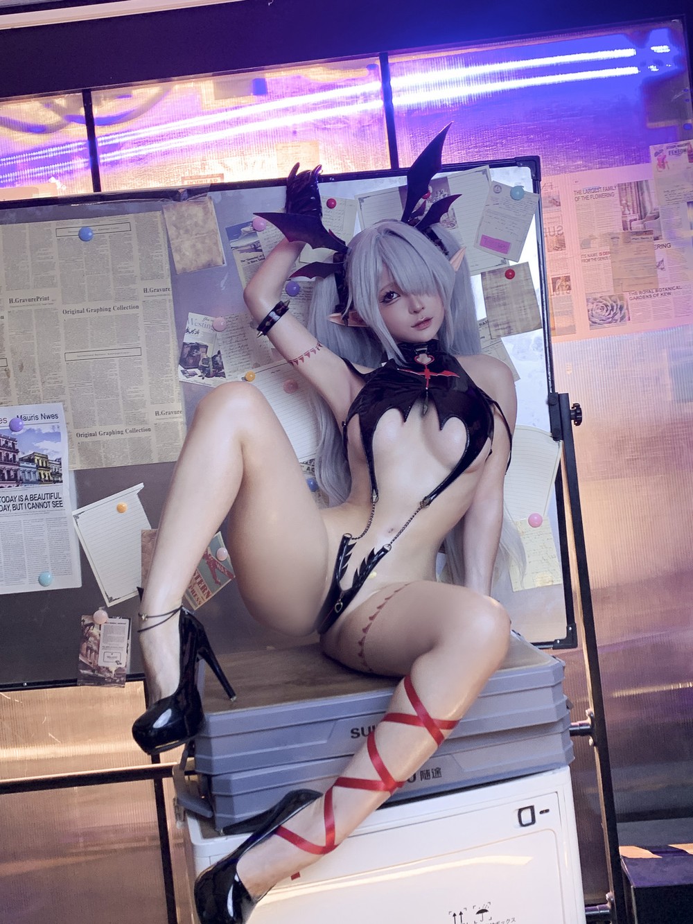 动漫博主蠢沫沫蔚蓝档案银镜伊织主题恶魔装扮性感黑色情趣内衣秀惹火身材诱惑写真