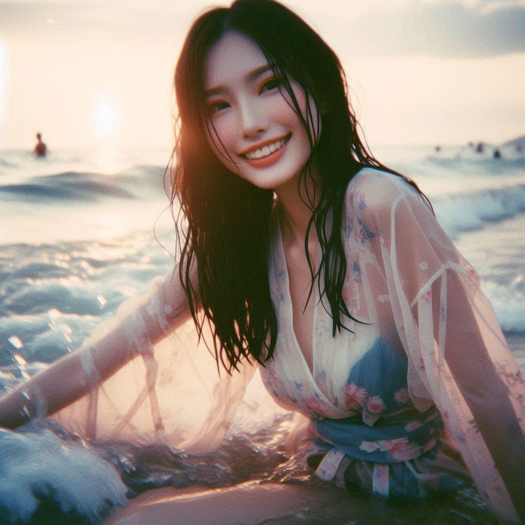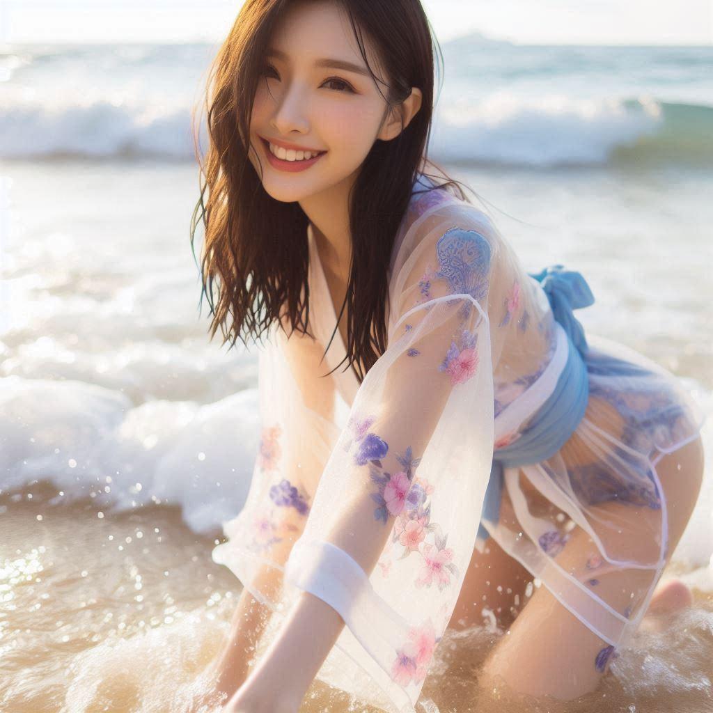 海边戏水的妹子