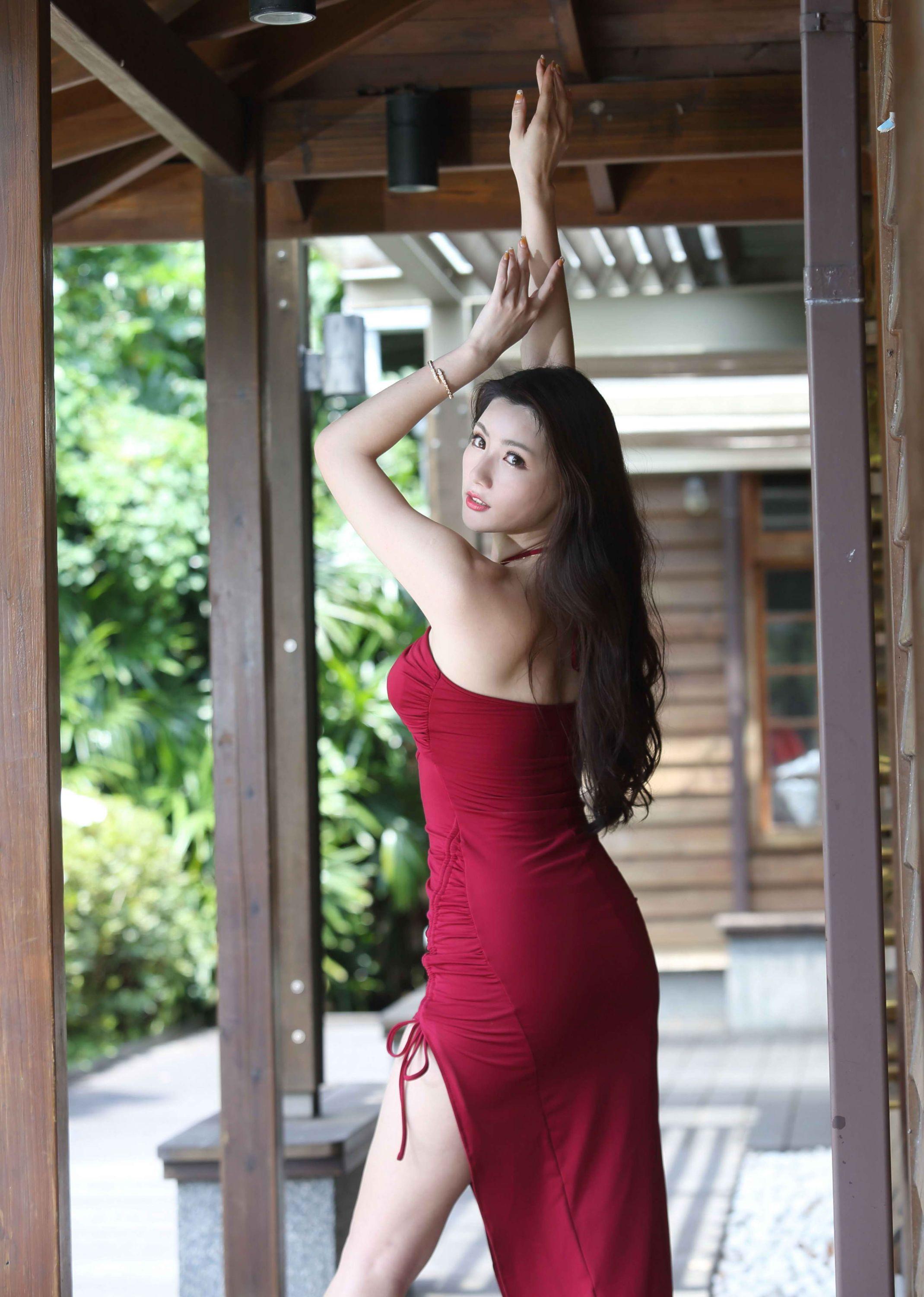 【美腿番外篇系列】长腿美模 张伦甄 高衩连衣裙 高跟美腿