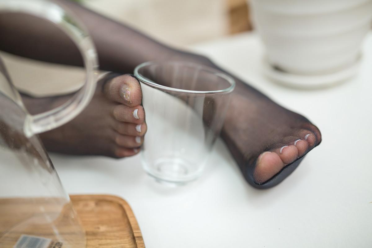 网络美女Sia不吃鱼迷恋黑丝主题性感蓝色包臀连衣短裙配超薄黑丝秀美腿玉足迷人写真