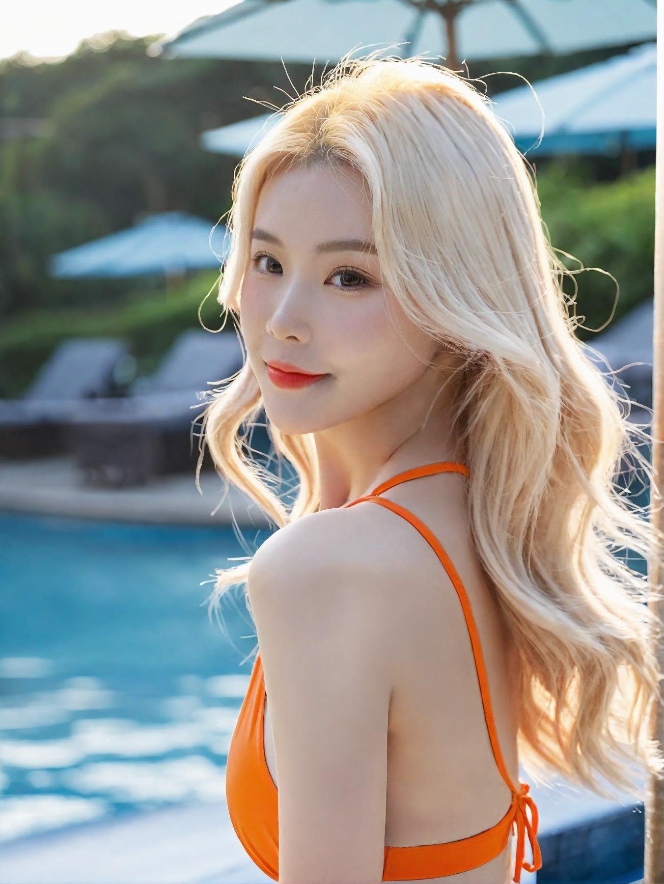 泳池的金发妹子