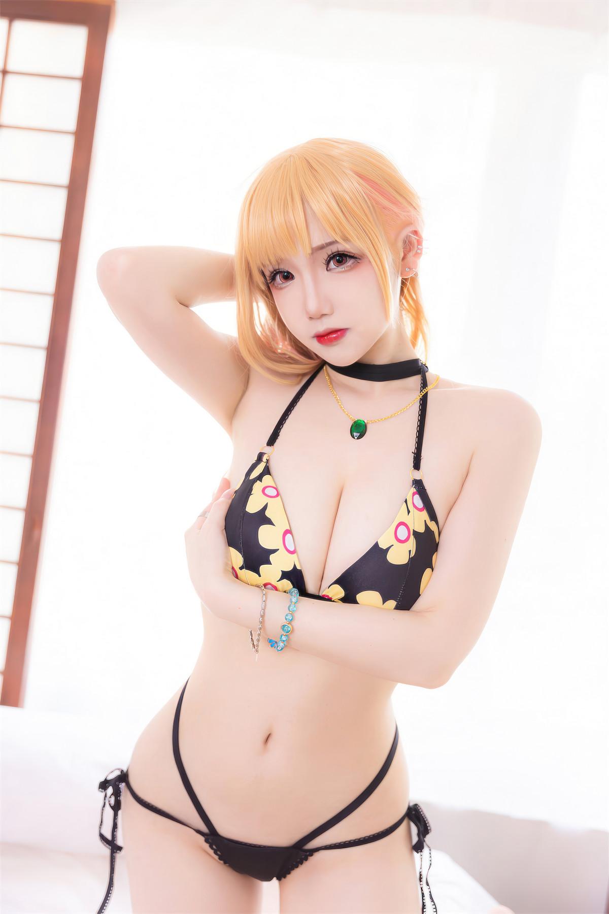 动漫博主雪晴Astra喜多川海梦比基尼主题超短牛仔裤露花色比基尼秀完美身材诱惑写真