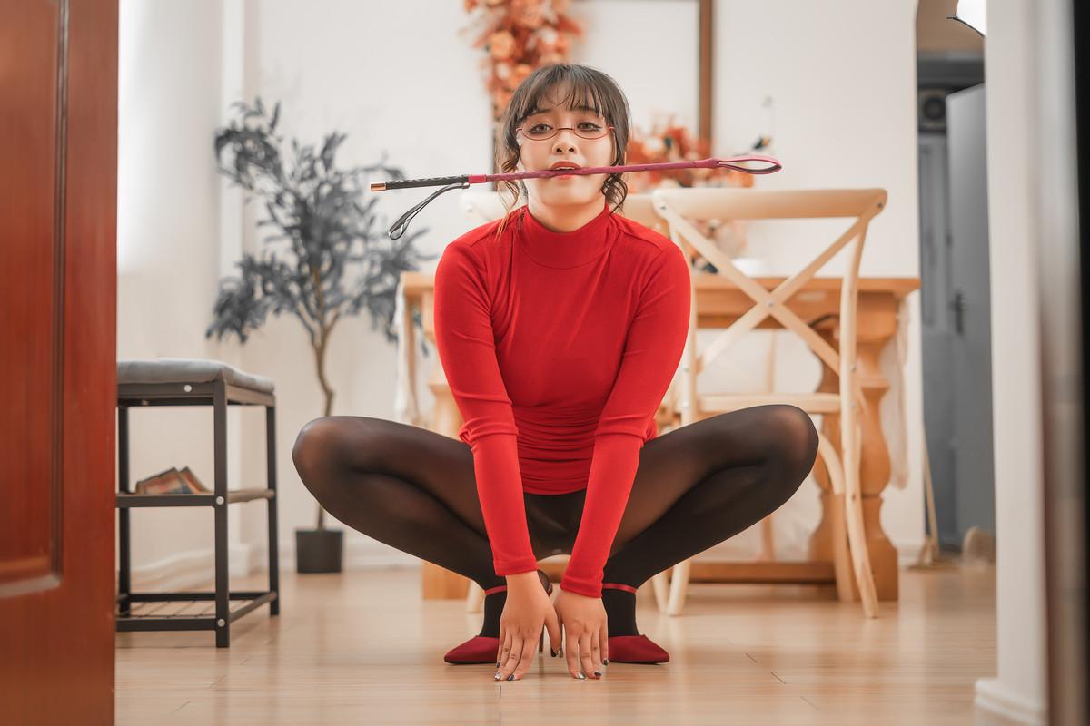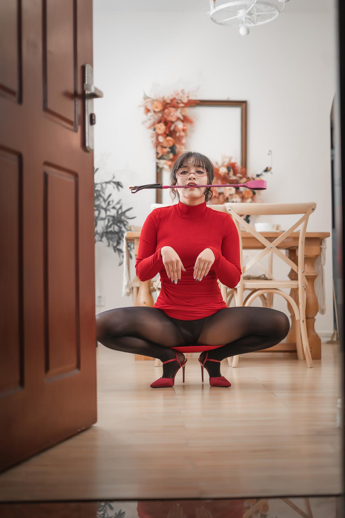 动漫博主洛璃LoLiSAMA隔壁太太主题性感红色连衣长裙露连体黑丝秀丰满身材诱惑写真