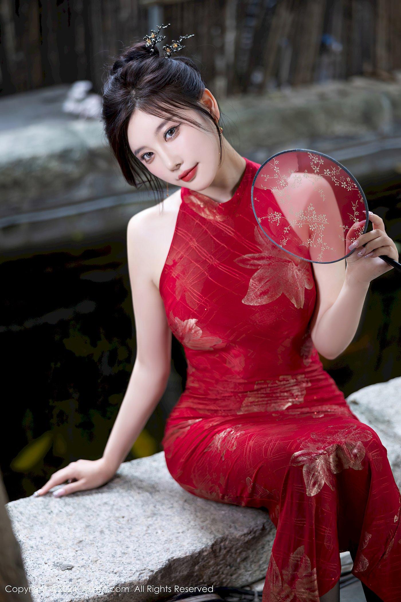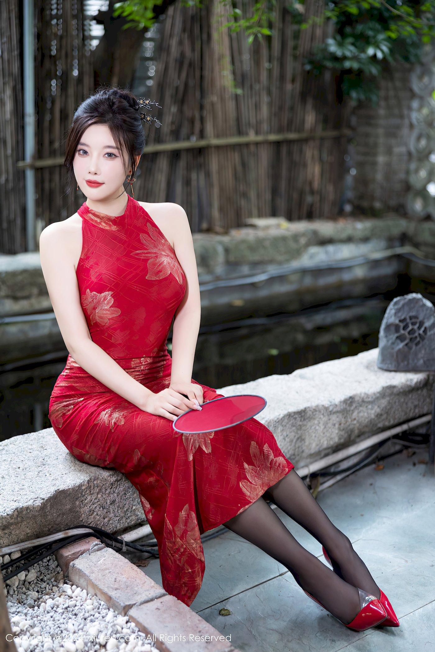 秀人网女神杨晨晨Yome红色旗袍搭配魅惑黑丝性感写真