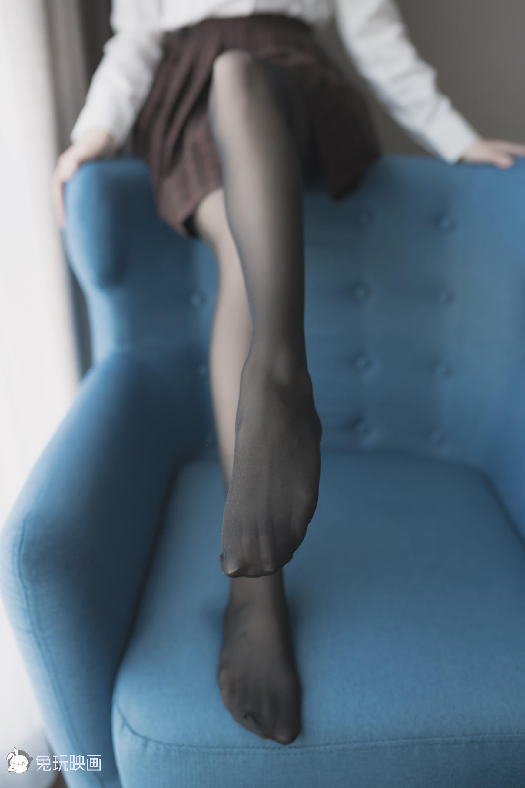 [兔玩映画] - 蓝椅子上的黑丝少女