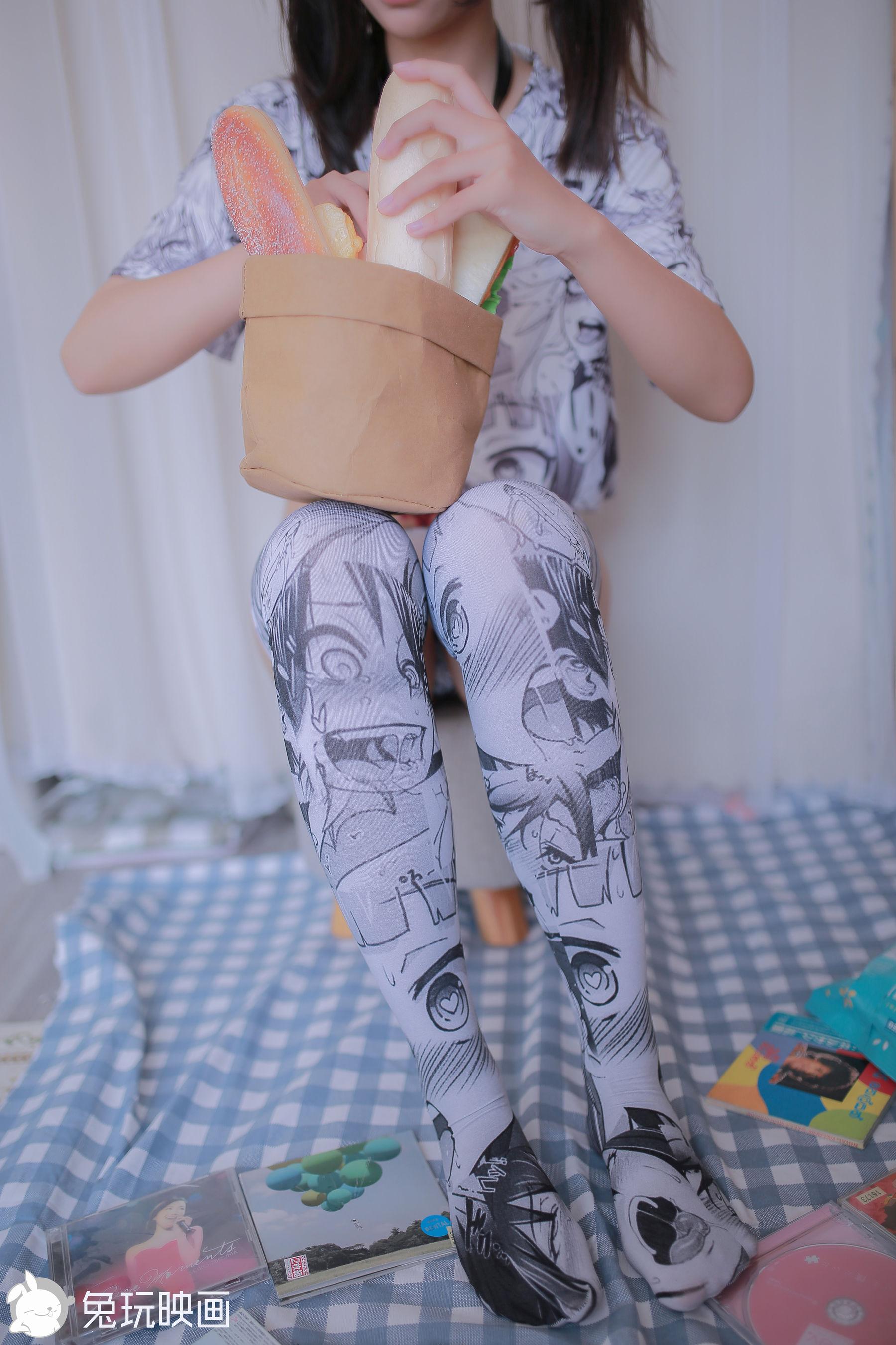 [兔玩映画] - 漫画袜子和粉色套装