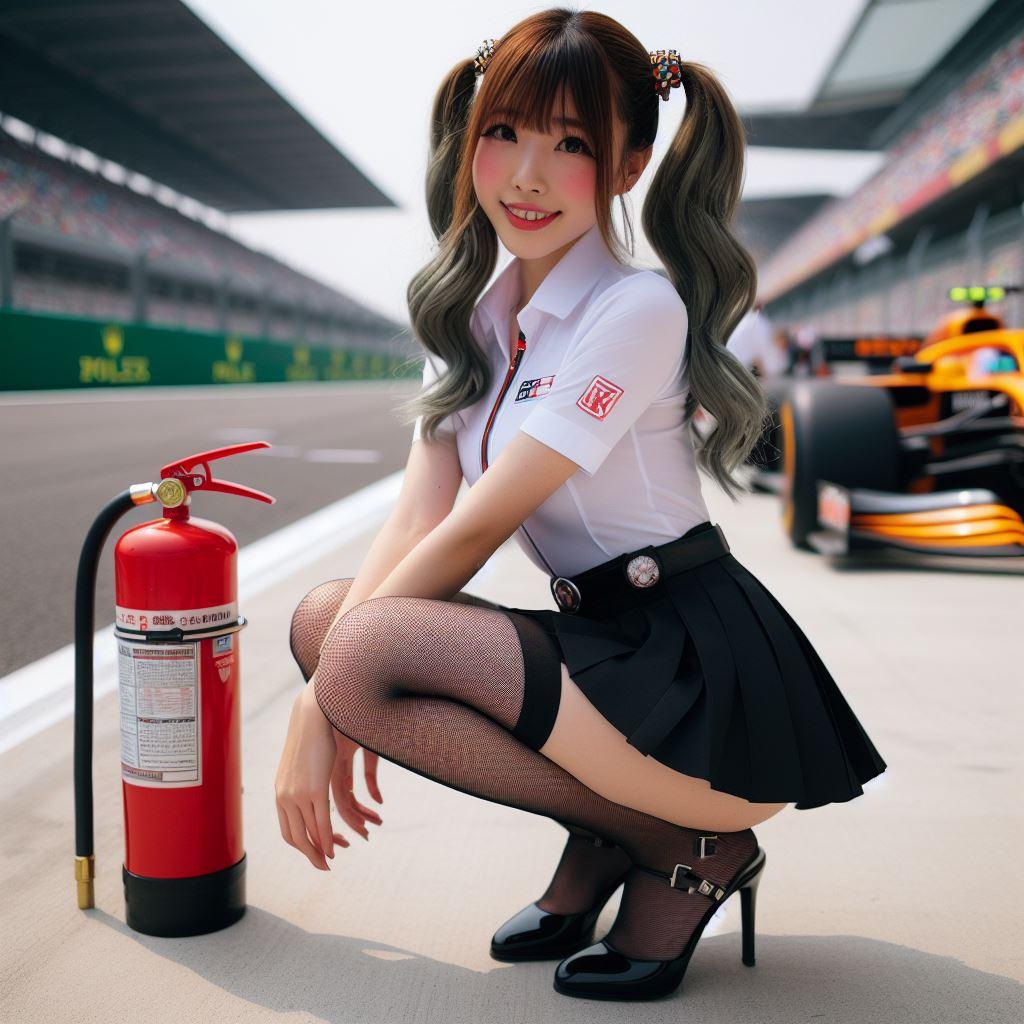 赛车场上的美女灭火员