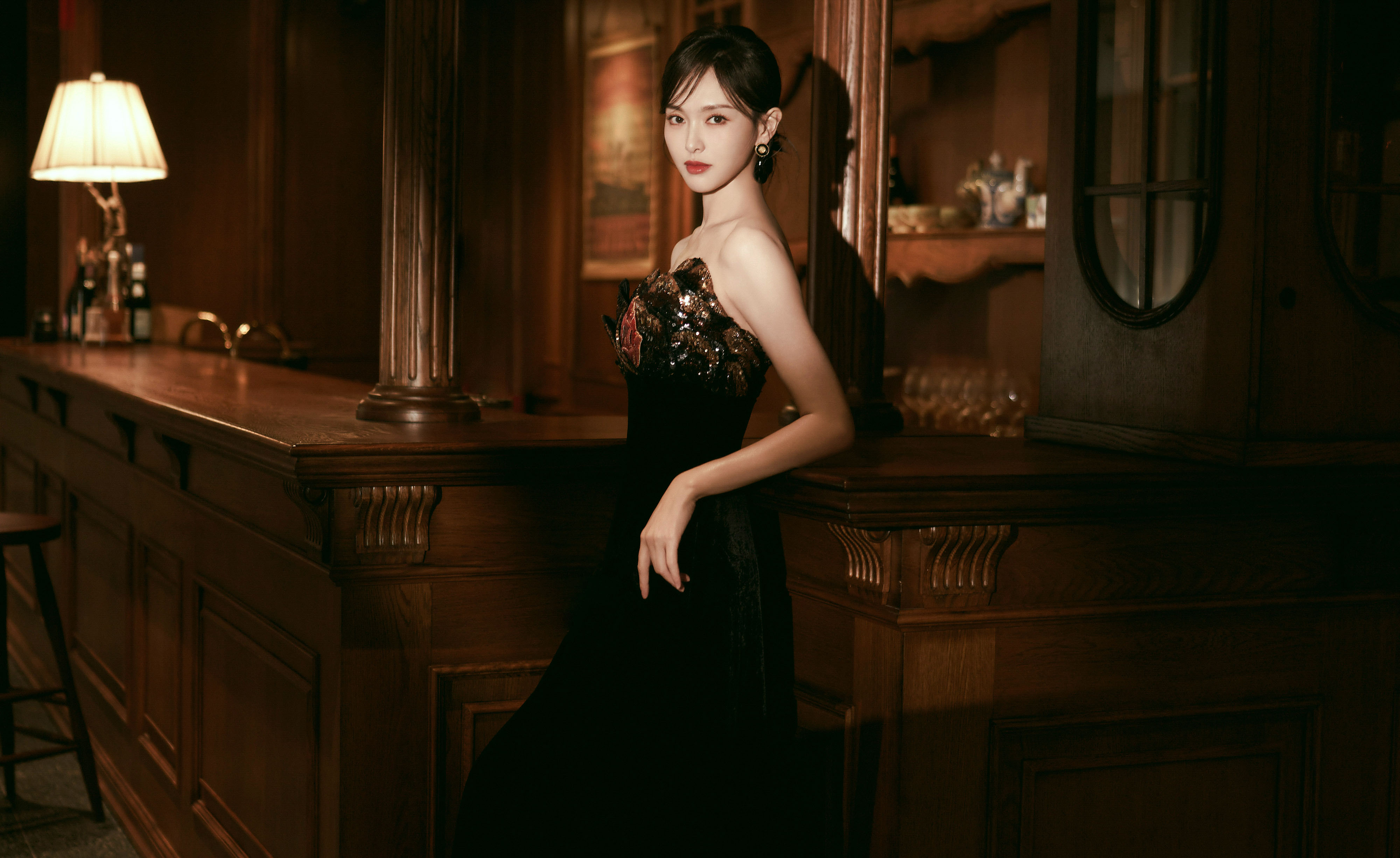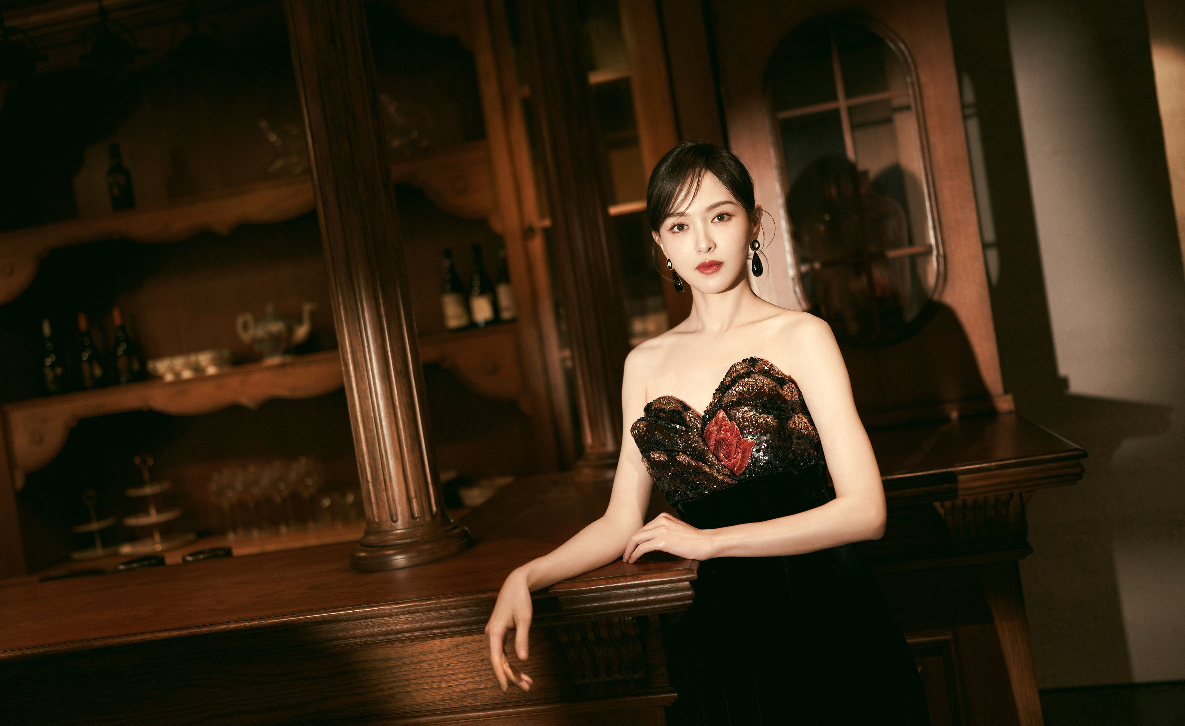 高衩红裙黑领带—关晓彤[高清套图]