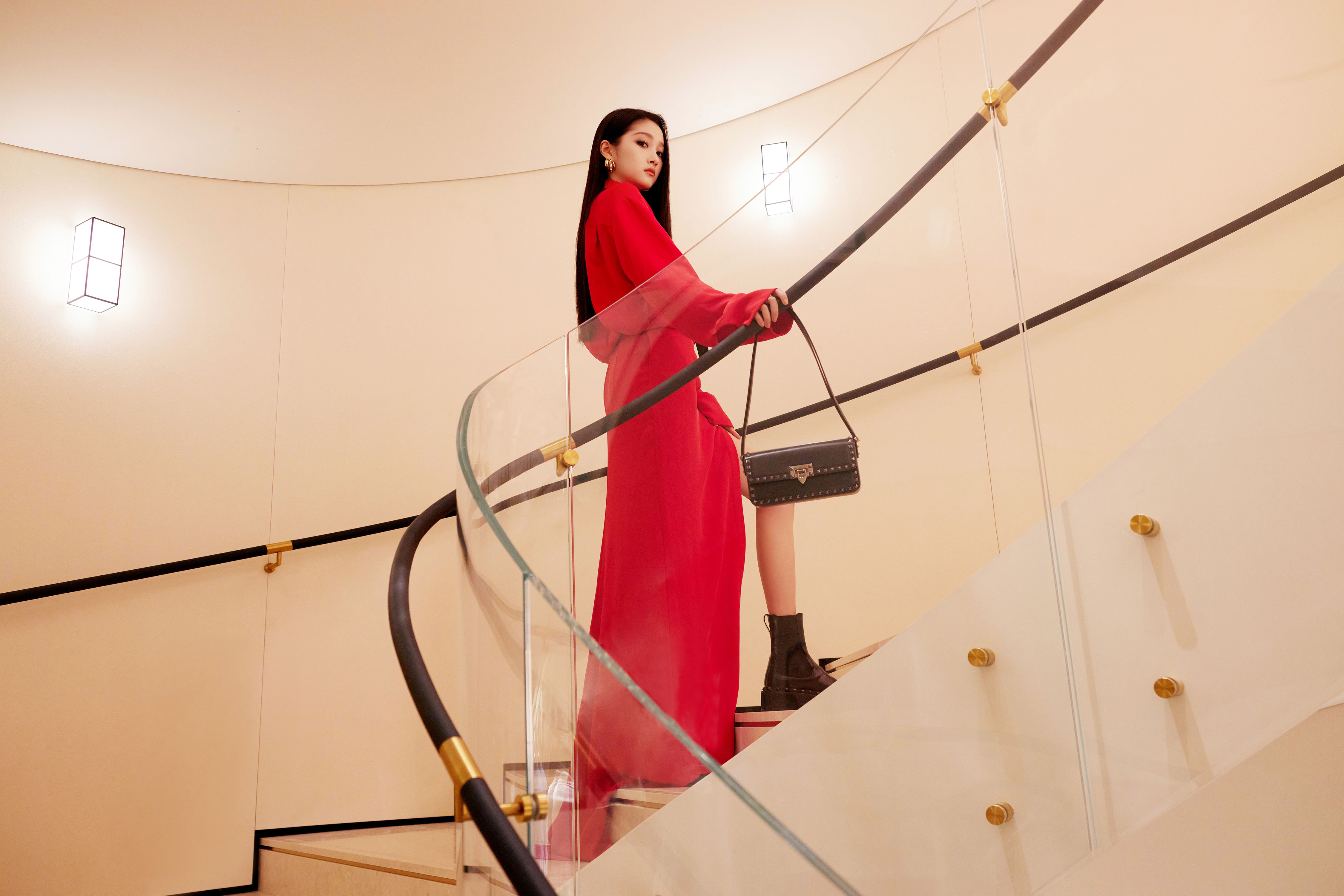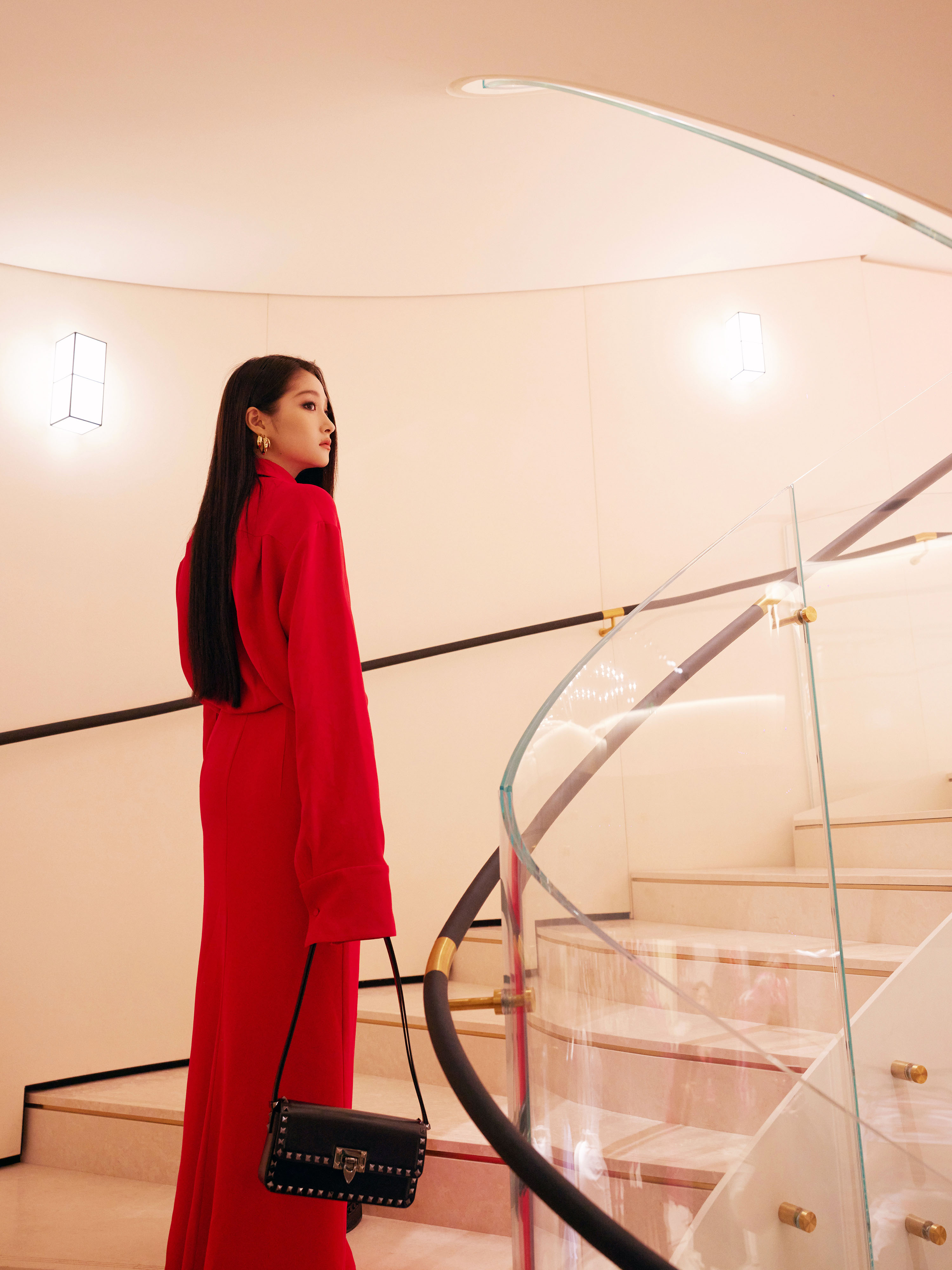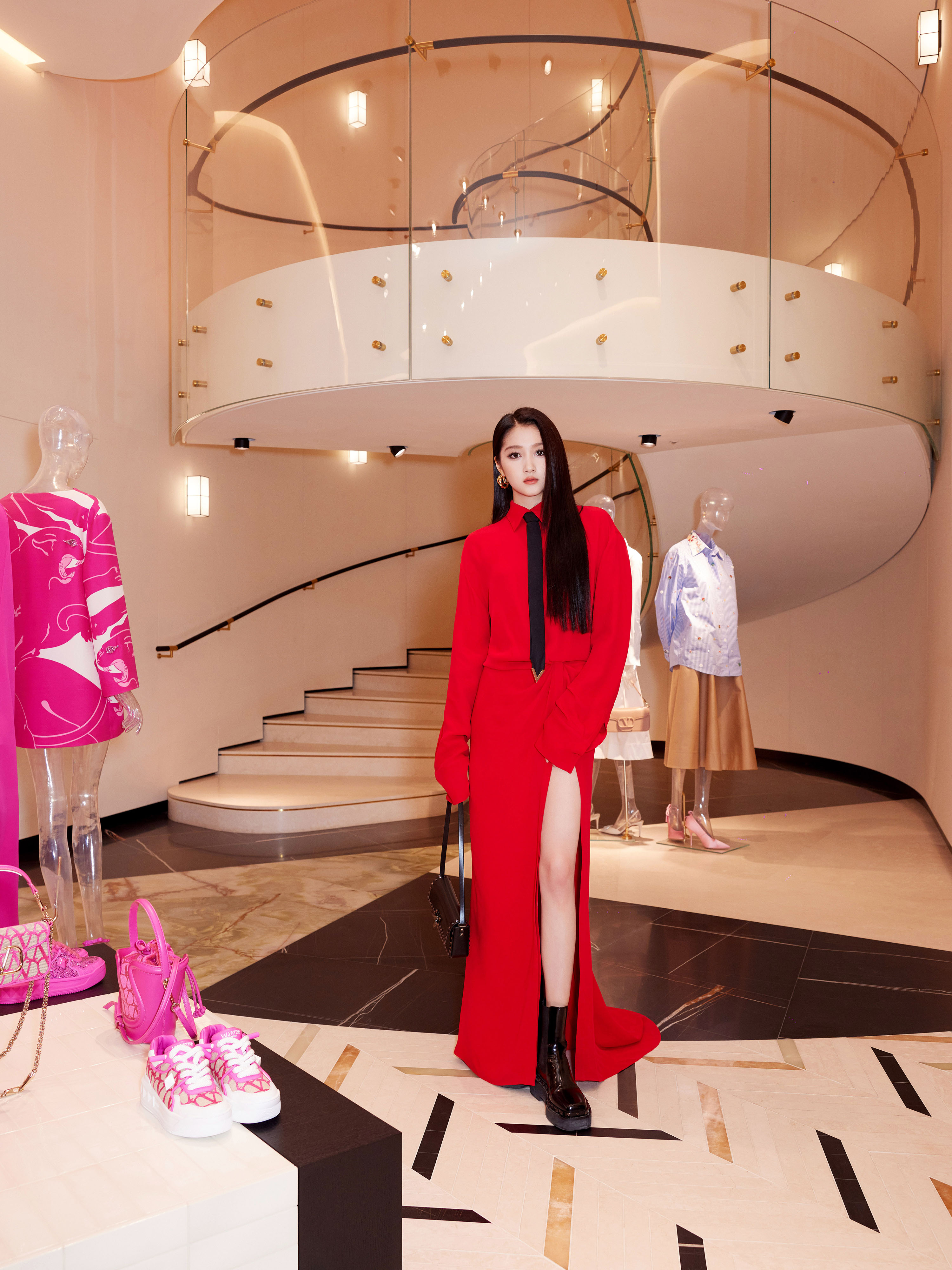 高衩红裙黑领带—关晓彤[高清套图]