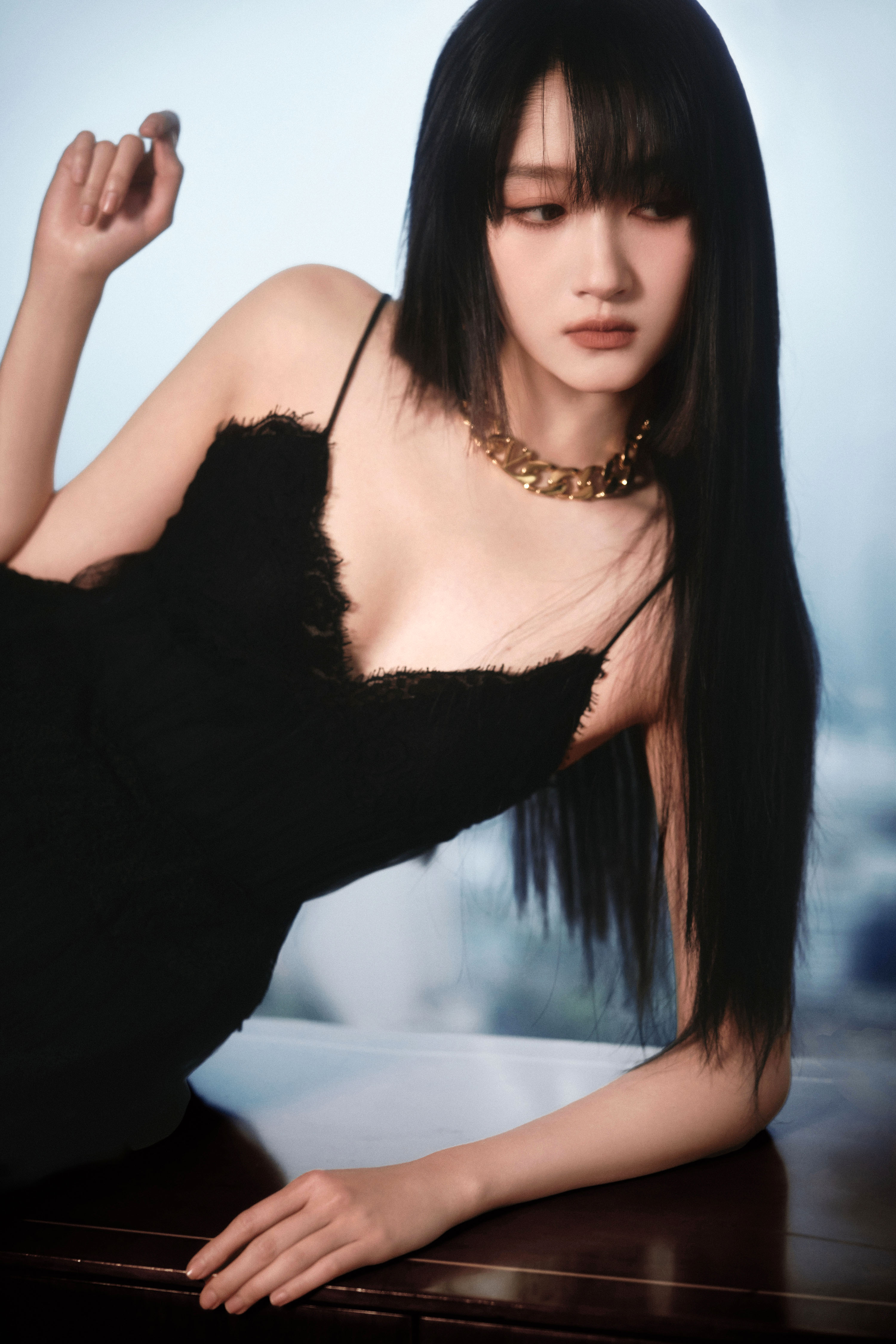 高衩红裙黑领带—关晓彤[高清套图]