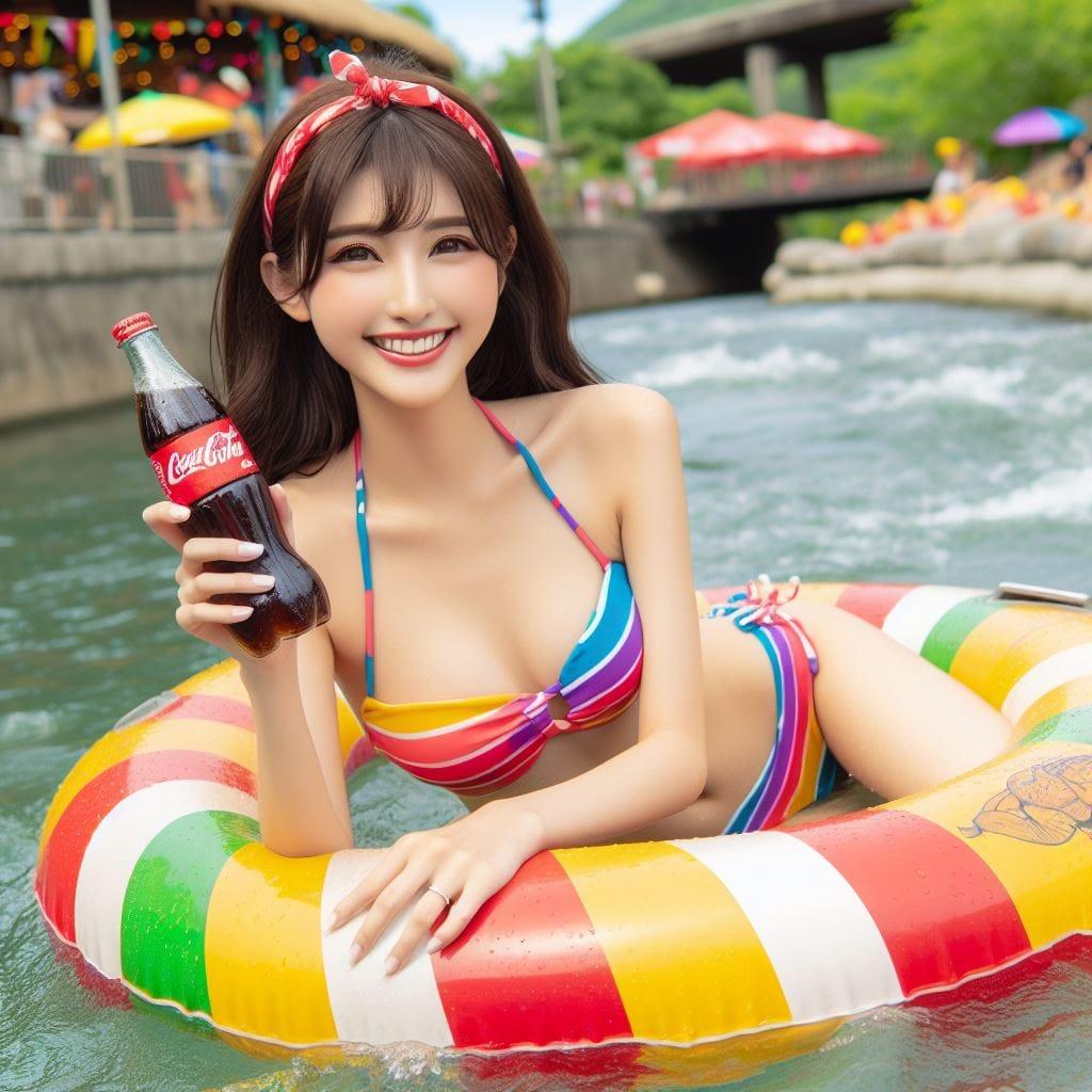妹子开心在游乐园玩水