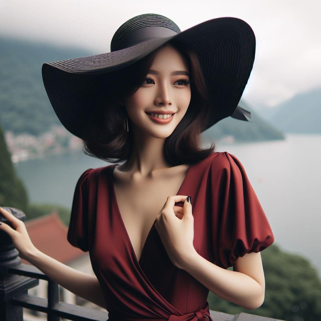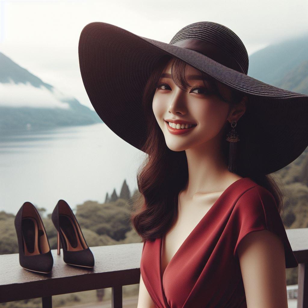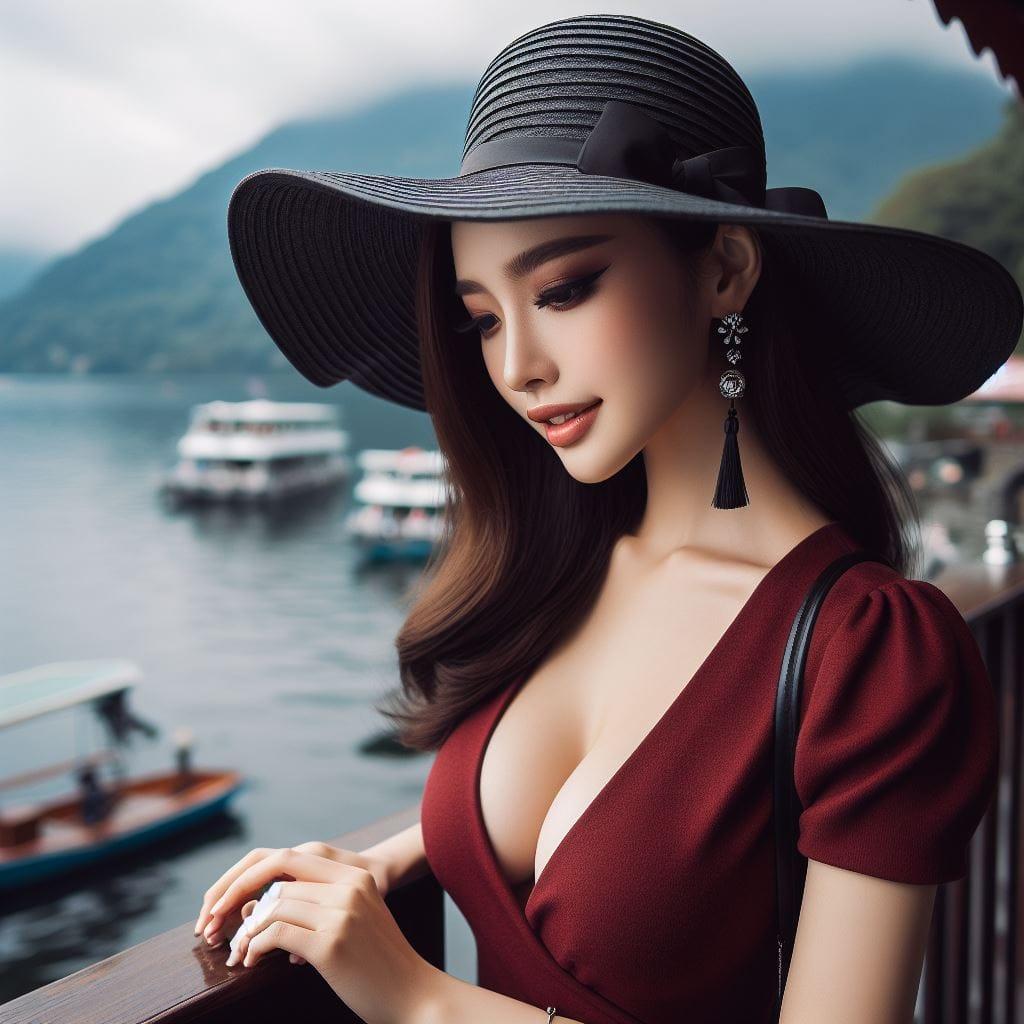 湖边巧遇的红衣妹子
