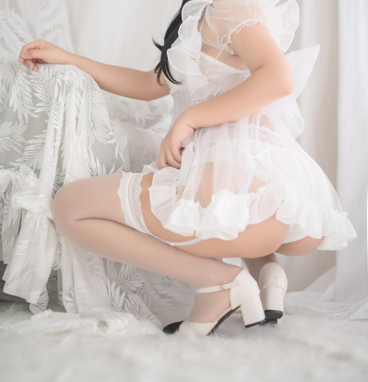 萌系小姐姐白烨白猫透明女仆主题性感白色透明女仆裙配白丝吊袜秀丰满身材诱惑写真