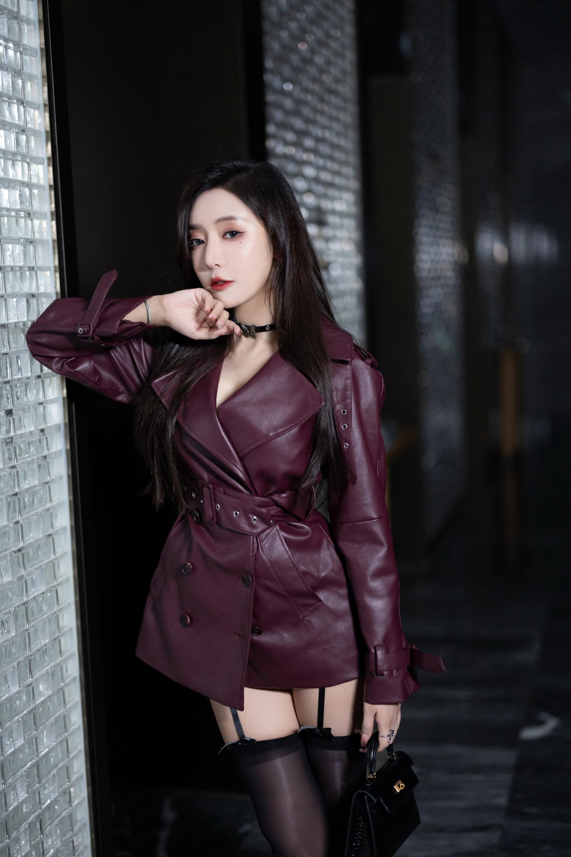 王馨瑶 紫色皮衣