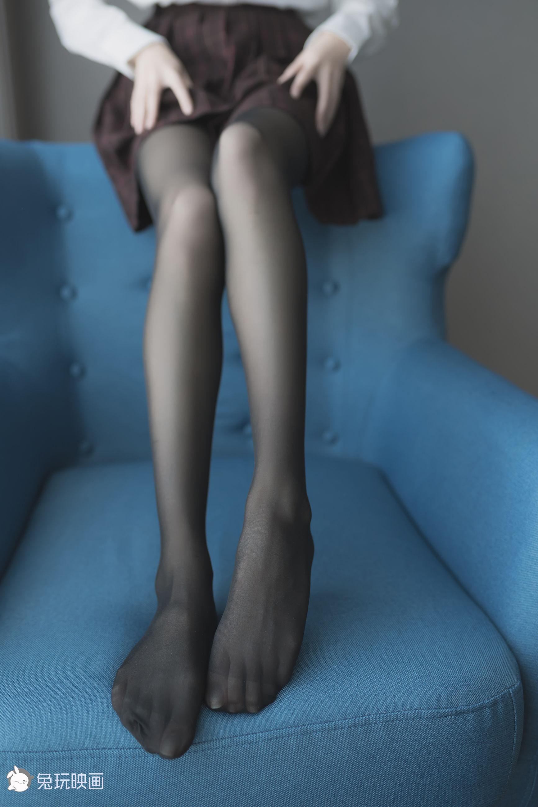 [兔玩映画] - 蓝椅子上的黑丝少女