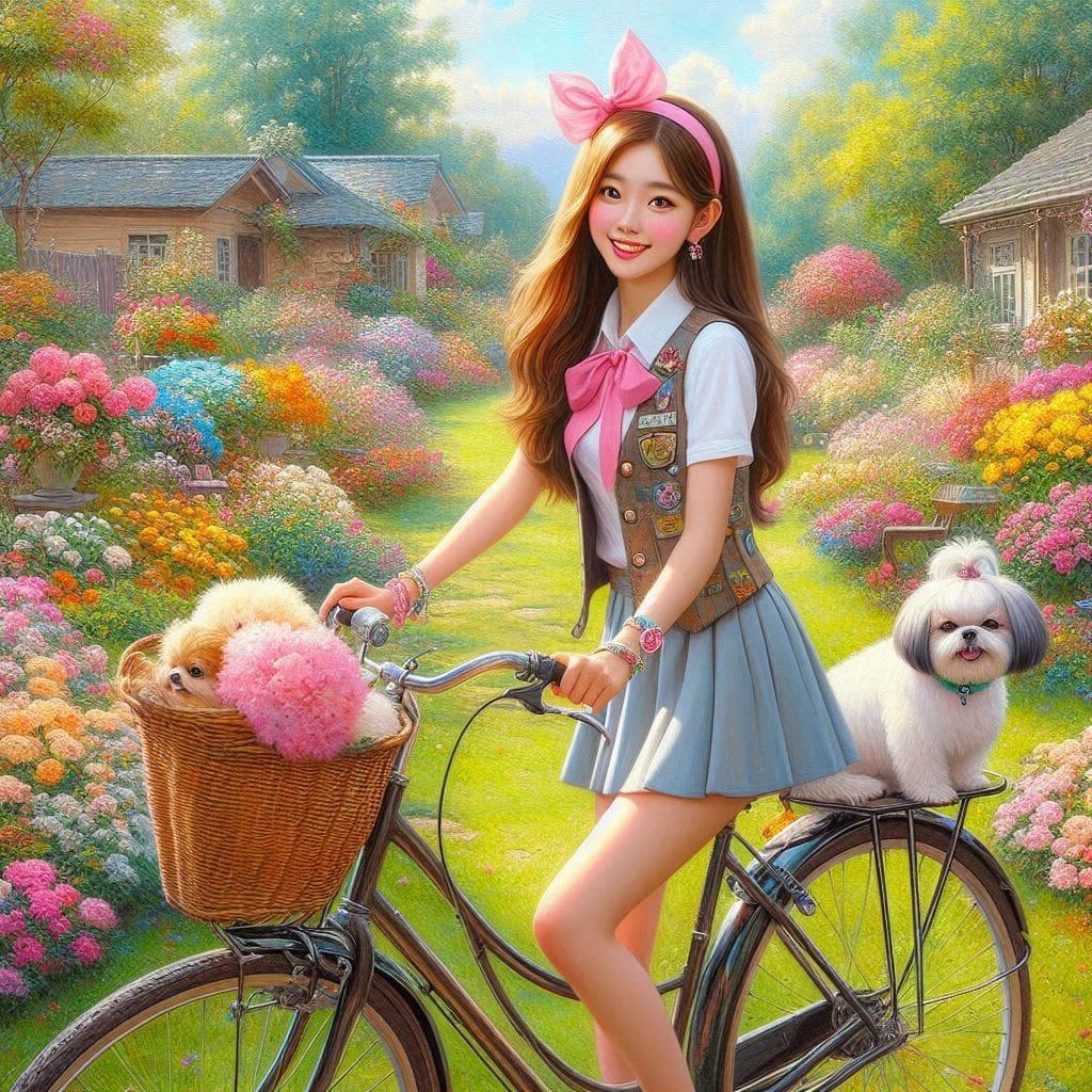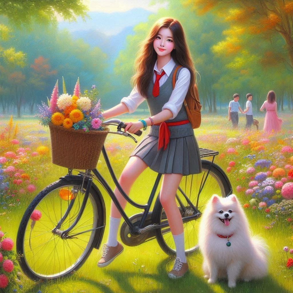 妹子骑脚踏车踏青去