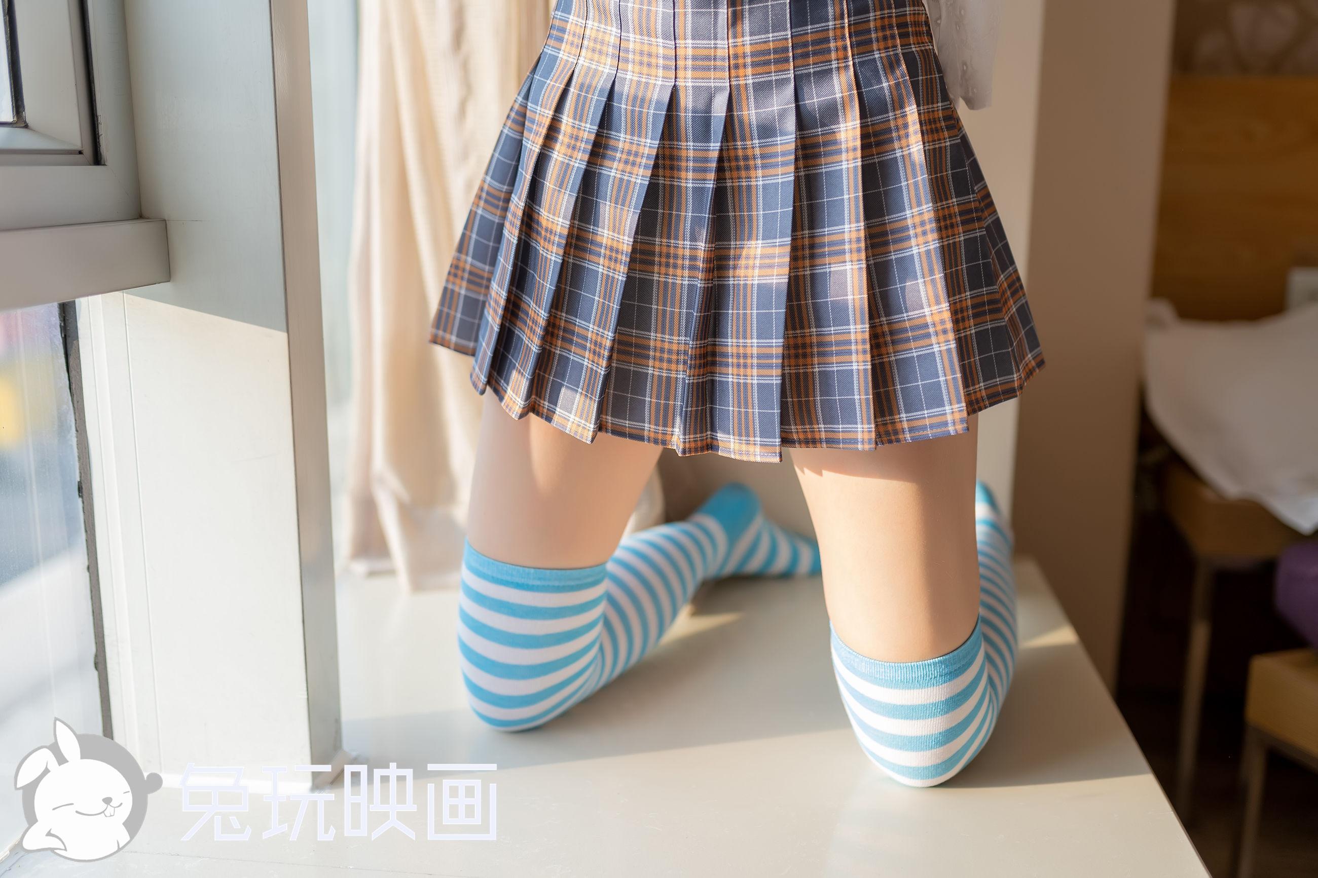[兔玩映画] - 俏皮短裙蓝白膝上袜