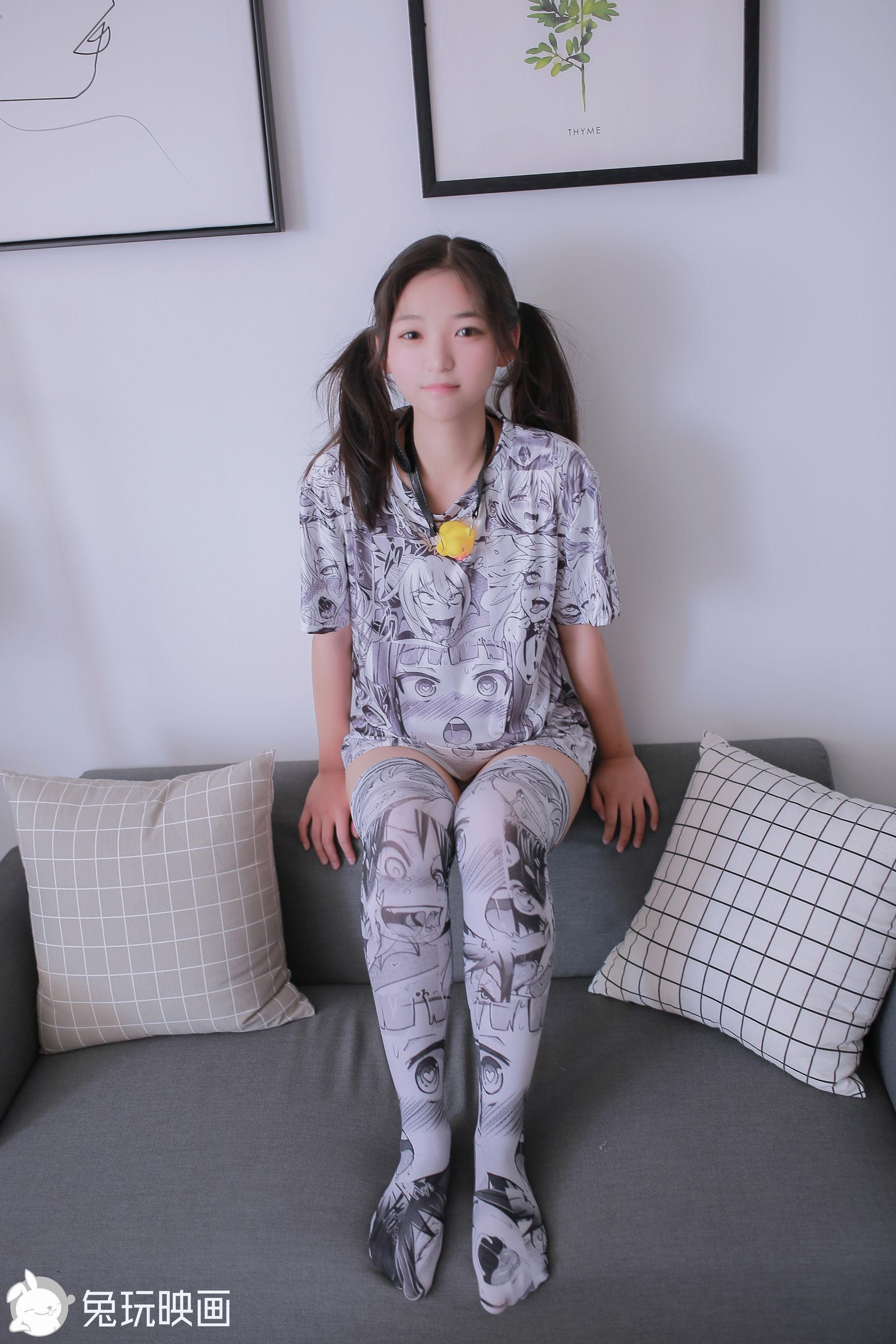 [兔玩映画] - 漫画袜子和粉色套装