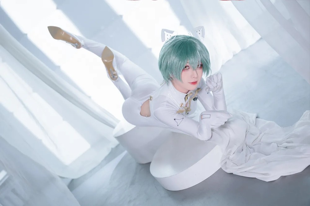 动漫博主水淼aqua原创竞泳主题性感灰色外衣下紧身高叉连体泳衣秀完美身材诱惑写真
