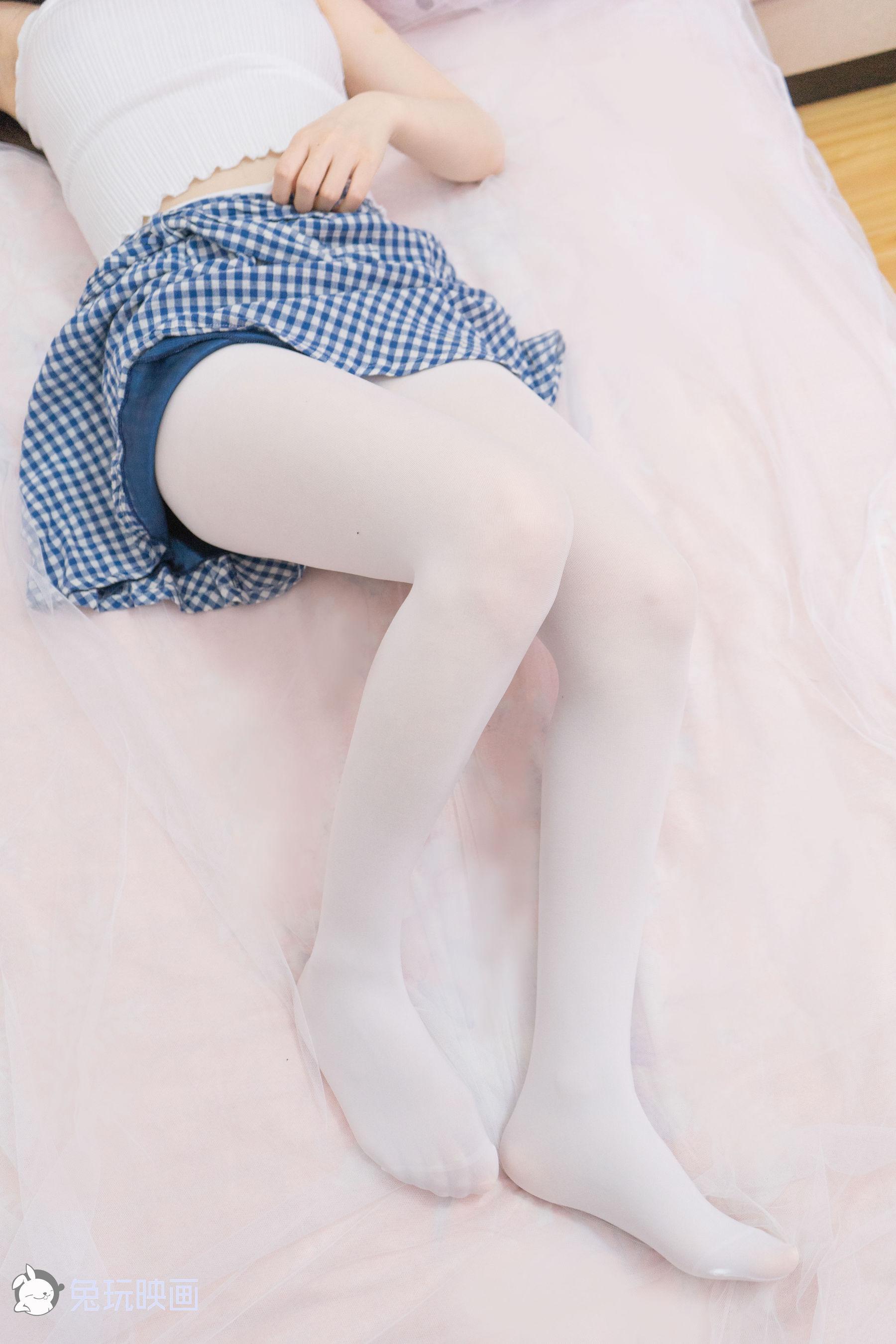 [兔玩映画] - 蓝格子裙的长白袜