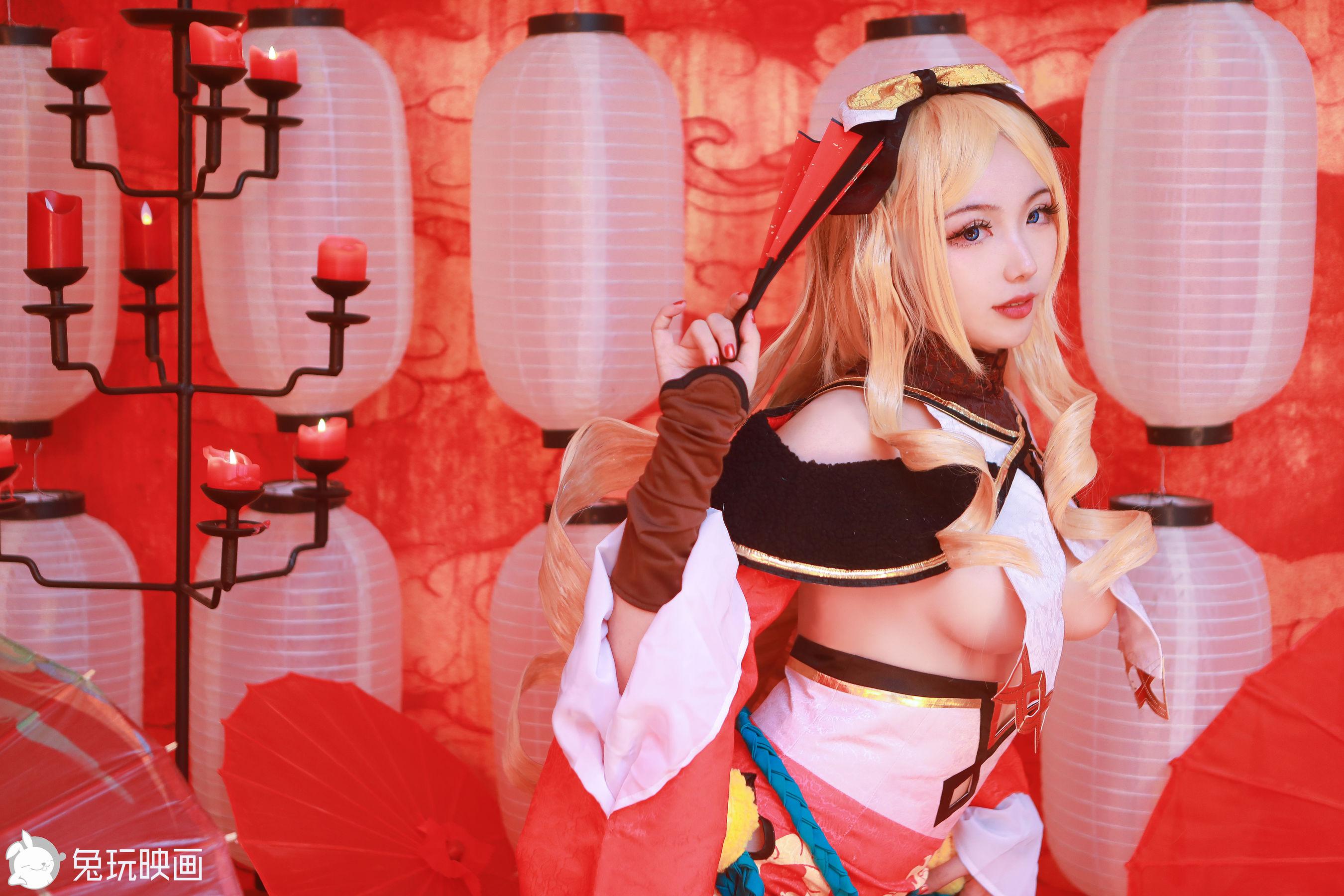 Coser美女兔胖胖min大凤花嫁主题私房性感白色情趣薄纱配白丝吊袜秀惹火身材诱惑写真