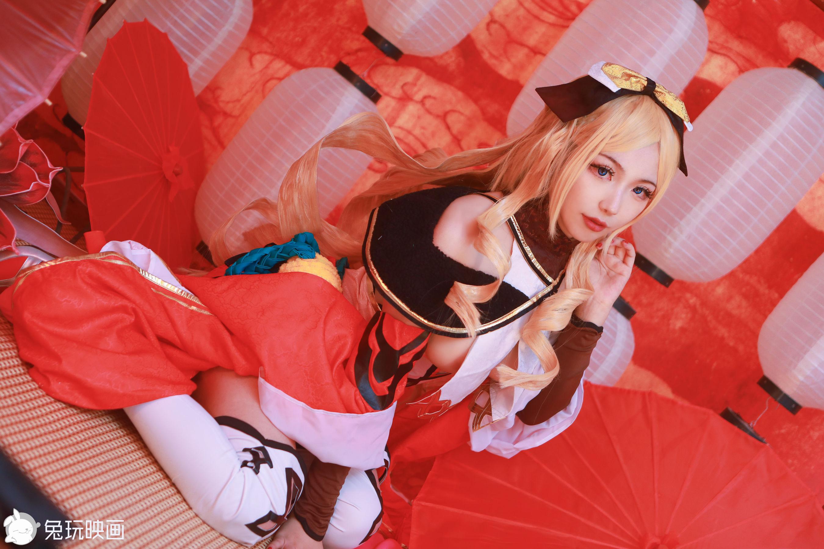Coser美女兔胖胖min大凤花嫁主题私房性感白色情趣薄纱配白丝吊袜秀惹火身材诱惑写真