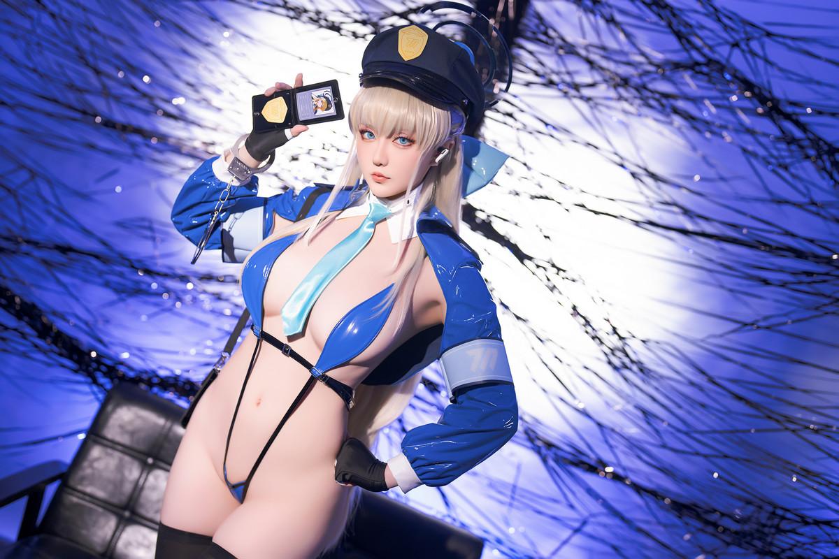 Coser小姐姐星之迟迟飞鸟马时主题性感蓝色情趣连体内衣配黑丝袜秀惹火身材诱惑写真